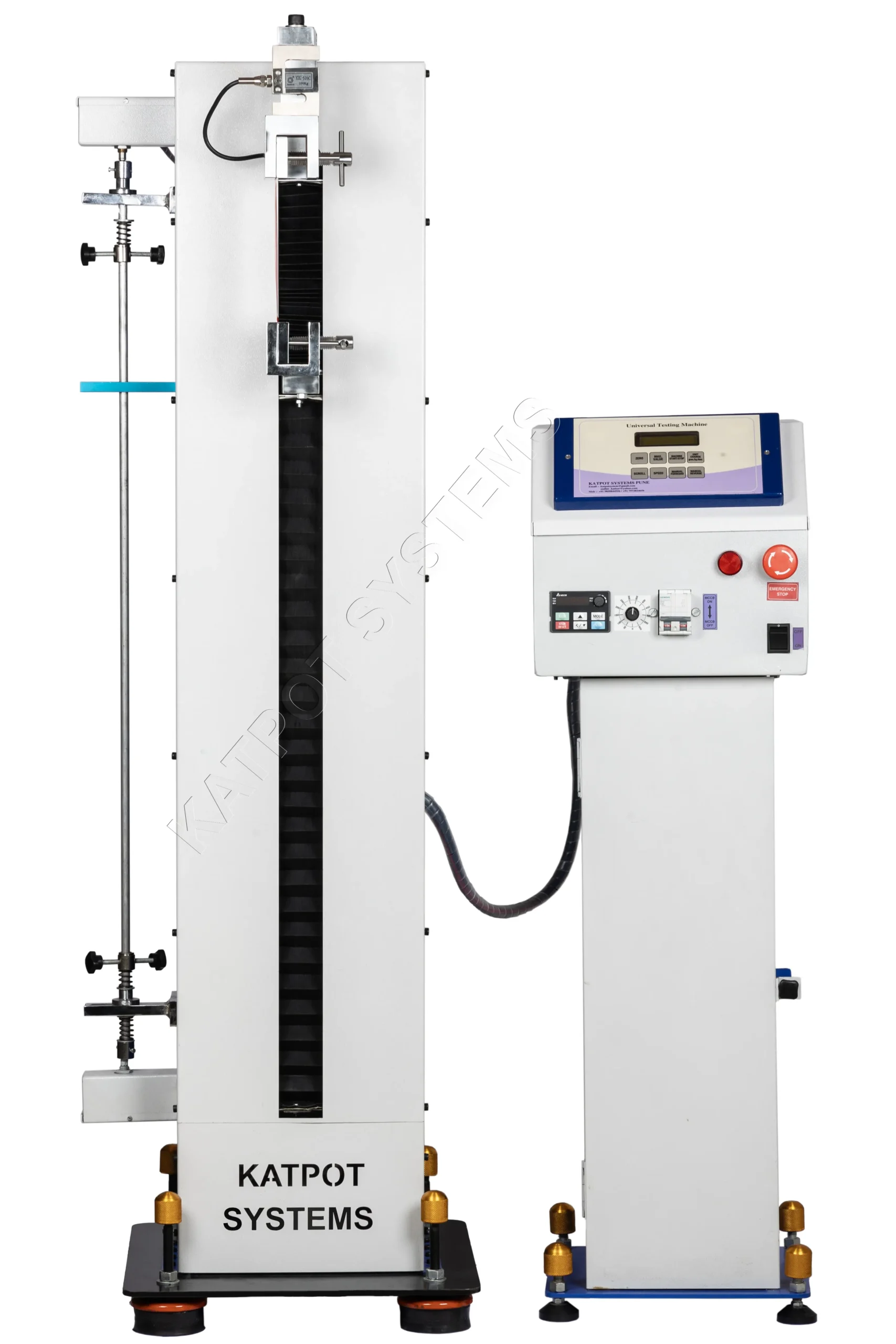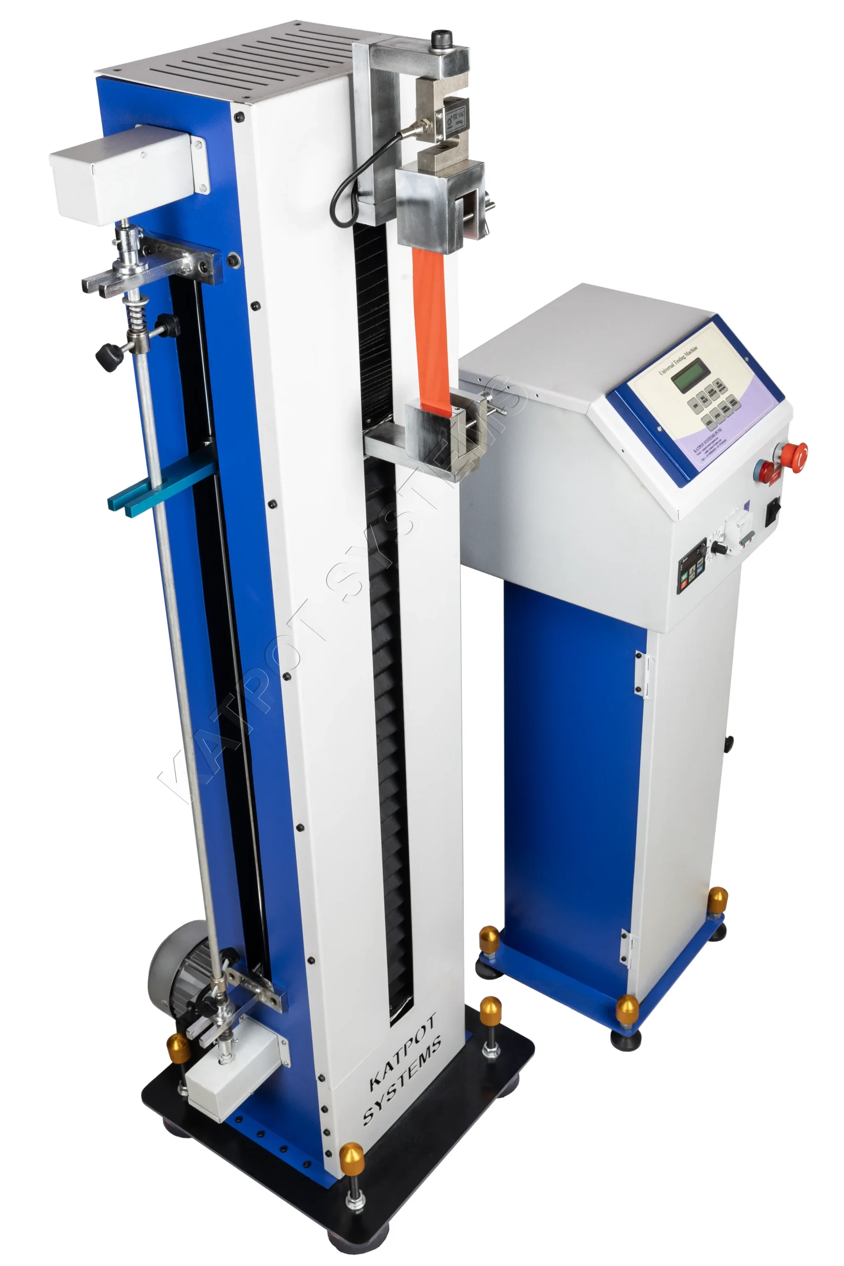 The Katpot Systems KTT-1000S Tensile Tester is an advanced computerized tensile testing system with real-time graphing, data logging, and report generation.